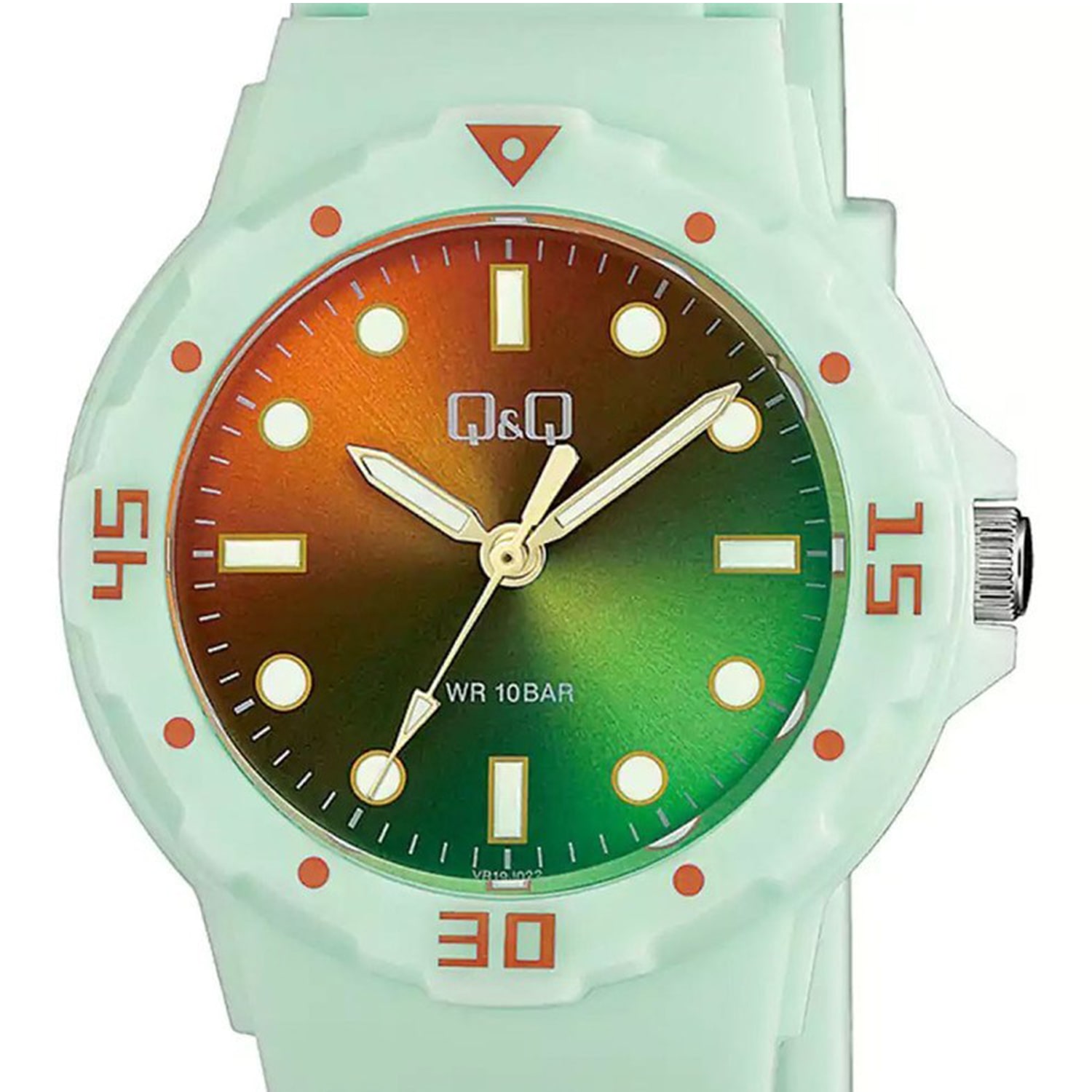 ساعت بچگانه کیو اند کیو مدل VR19J022Y یک ساعت اسپرت و شیک با طراحی مدرن از برند ژاپن است. این مدل با بدنه رزین، بند سیلیکونی مقاوم و شیشه کریستال معدنی عرضه میشود. دارای موومنت کوارتز ژاپنی میوتا و مقاومت در برابر آب تا عمق 100 متر است. مناسب برای استفاده روزمره و استایلهای کژوال است.