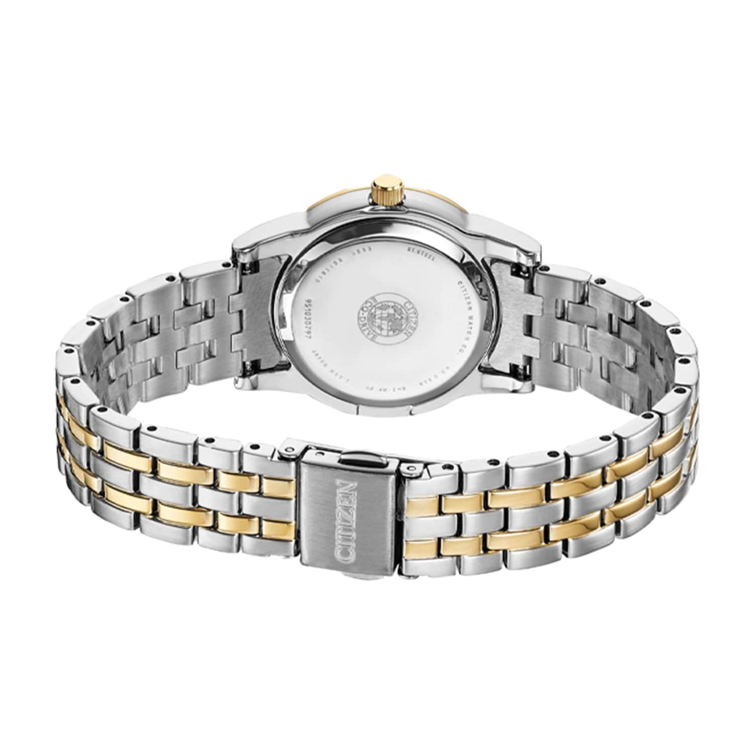 بررسی لوگو و حکاکیها: لوگوی سیتیزن باید با دقت و وضوح بالا روی صفحه، بند یا پشت ساعت حک شده باشد. عبارت "Mov’t Japan" روی قاب پشت نشاندهنده موتور ژاپنی است.